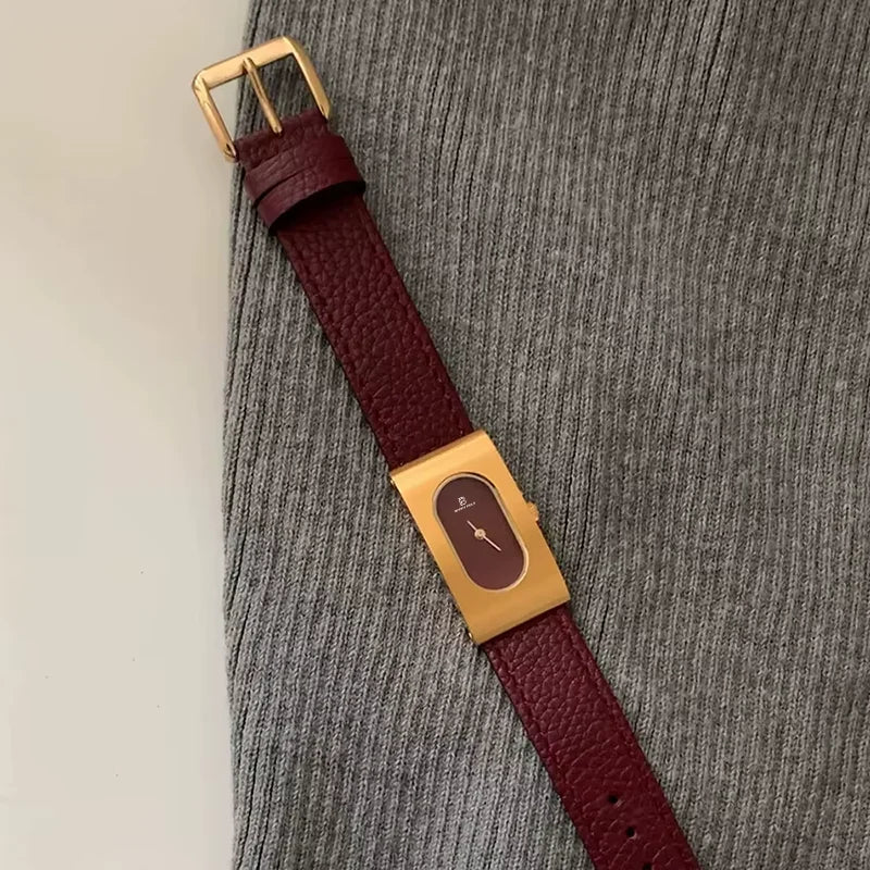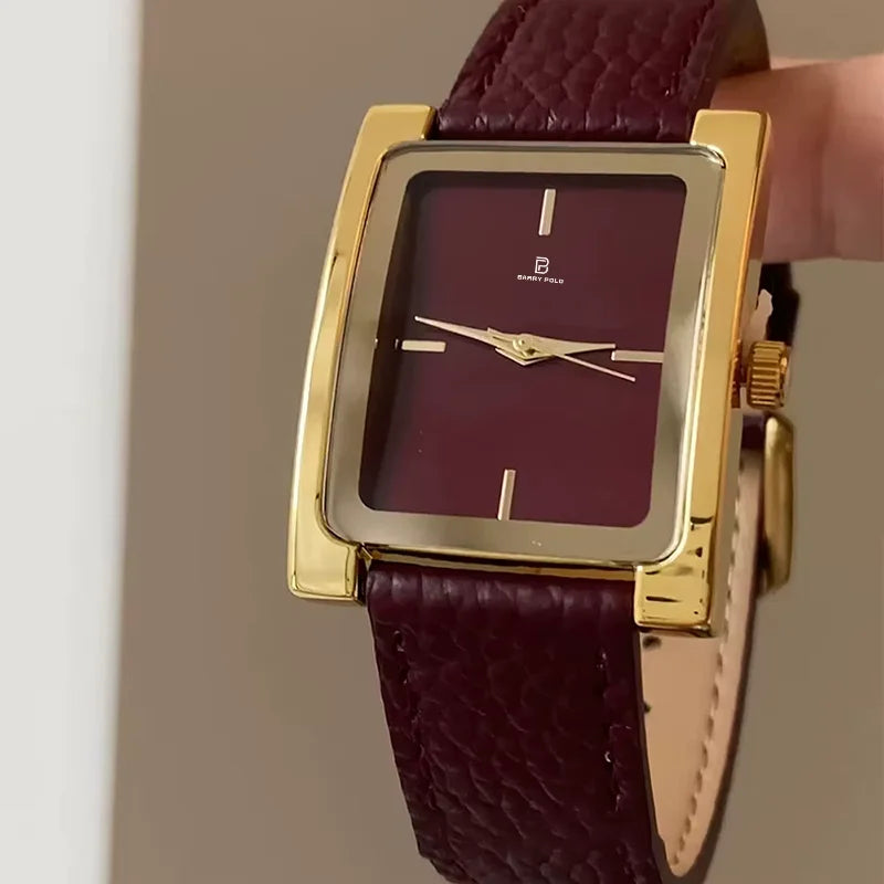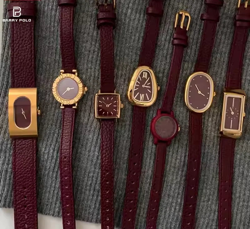 The Aurora Women’s Vintage Red Leather Watch features a stunning vintage design, high-quality materials, and precise quartz movement, making it a timeless accessory.