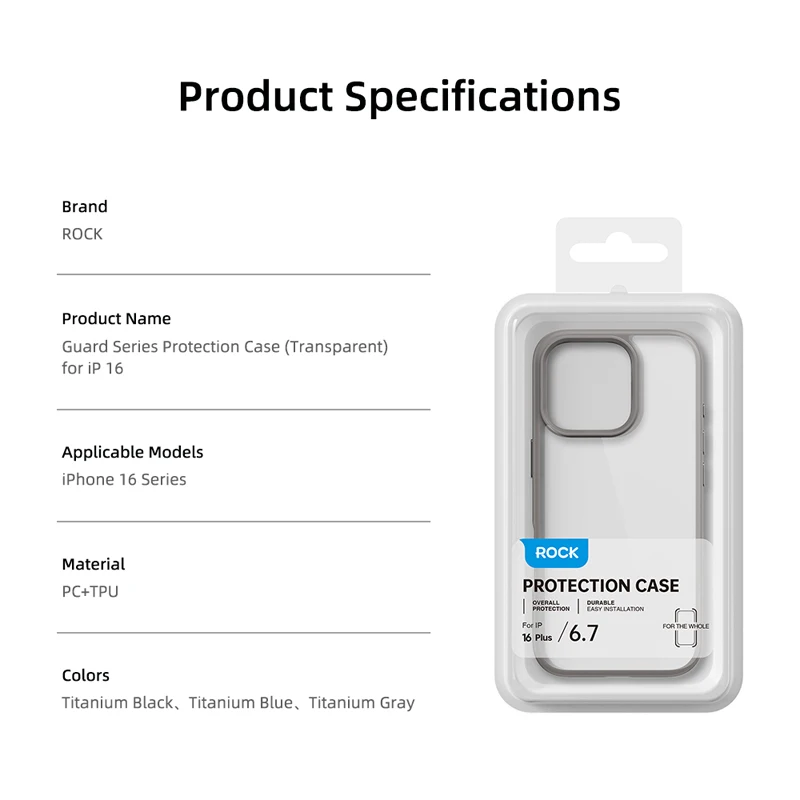 Clear TPU Protective Bumper Case for iPhone 16 Series Specification