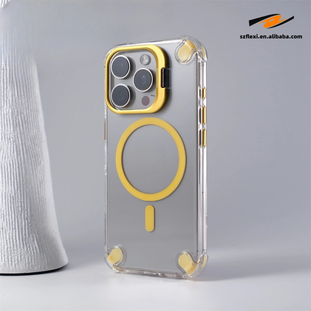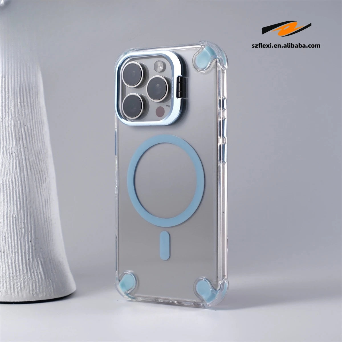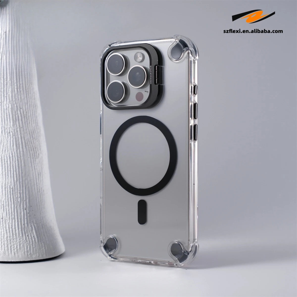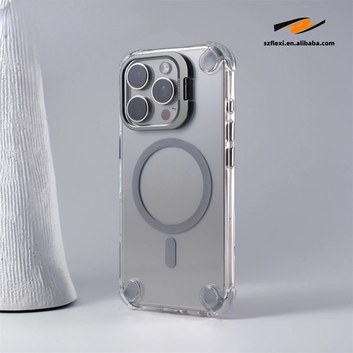 - Durable clear case with a magnetic lens for enhanced photography.