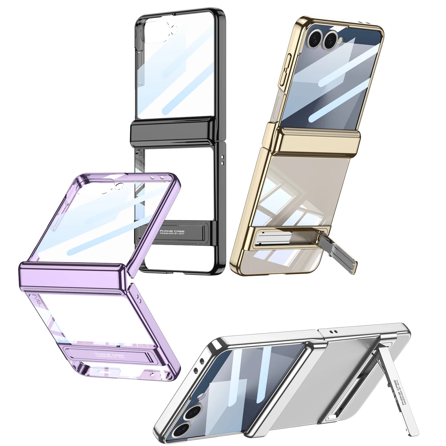 Protect your Samsung Z Flip7 with the stylish and durable Kickstand Phantom Case, available in four vibrant colors: Black, Purple, Silver, and Gold.