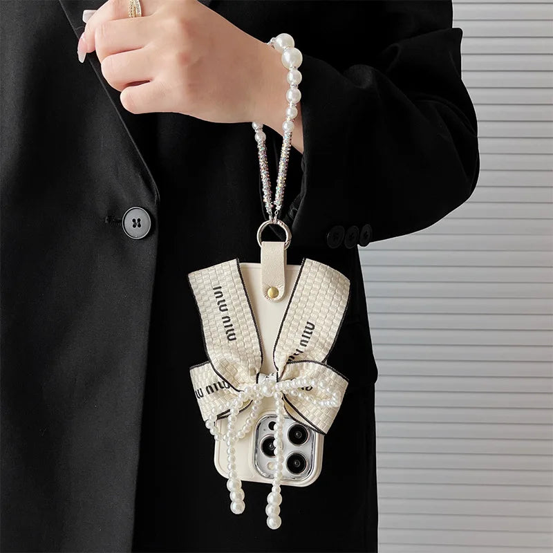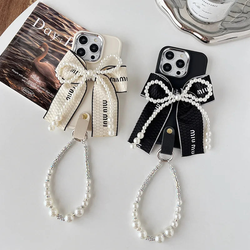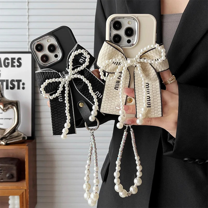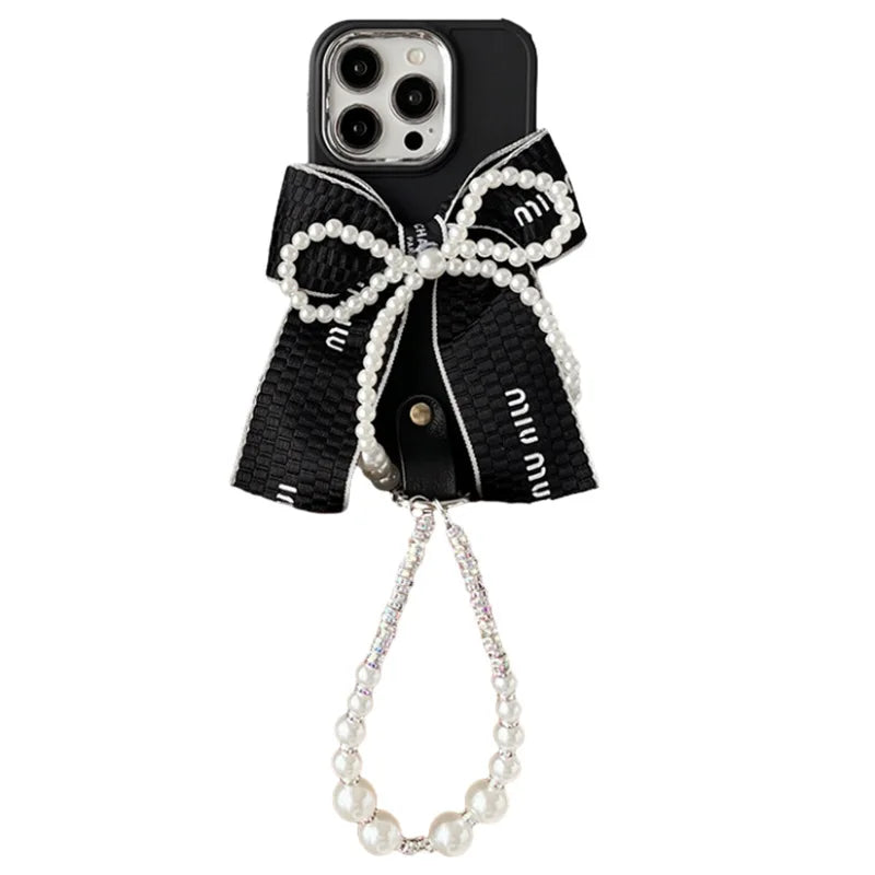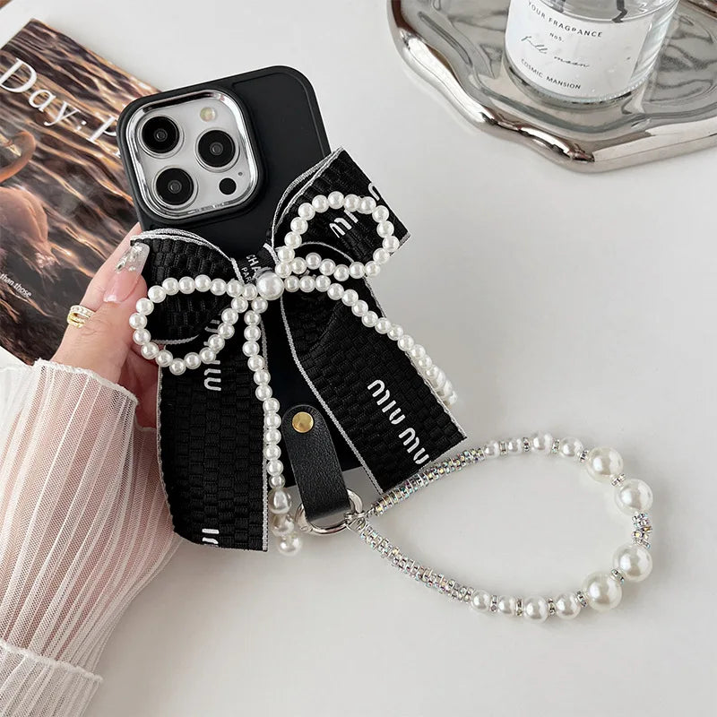 Luxury Pearl Bow iPhone Case with Bracelet