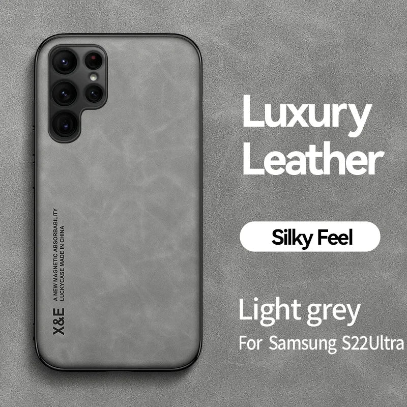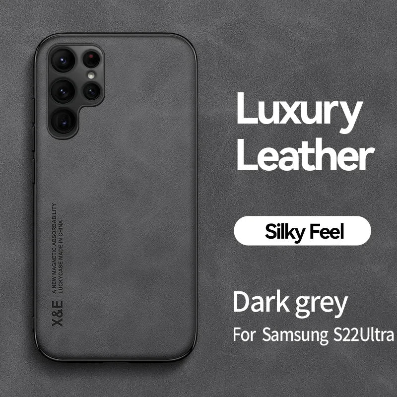 Protect your Samsung Galaxy with our stylish Magnetic Leather Phone Case, designed for various models including S22, S23, and S24. Choose from four elegant colors: Blue, Dark Gray, Gray, and Green, to match your personal style. Enjoy superior protection and a sleek design that keeps your phone secure and looking great.