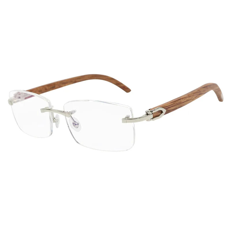 Men’s Titanium Rimless Glasses with Wood Temples
