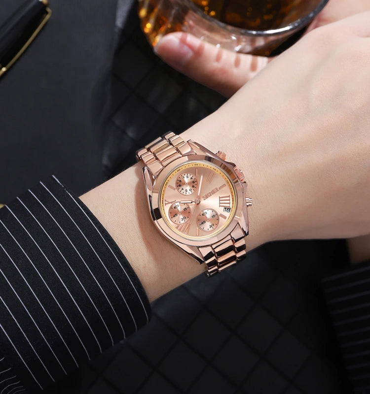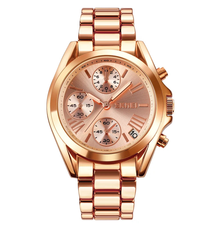 The watch is available in stunning rose gold, silver, and gold finishes to match any style.