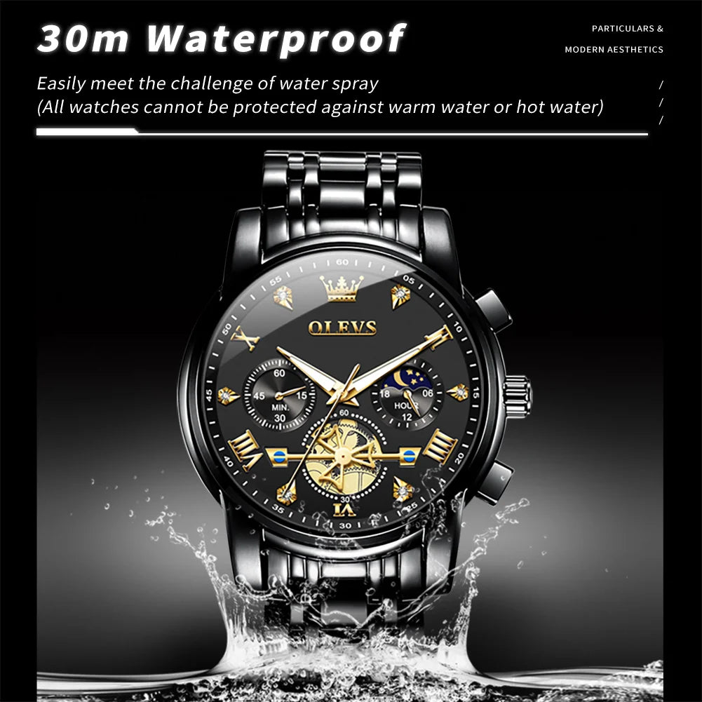 OLEVS 2856 Men’s Waterproof Quartz Chronograph Watch Features