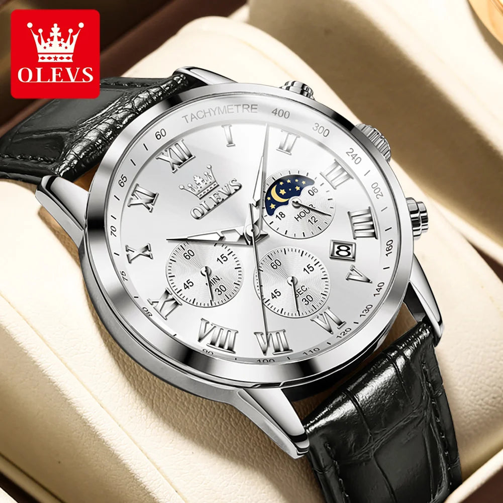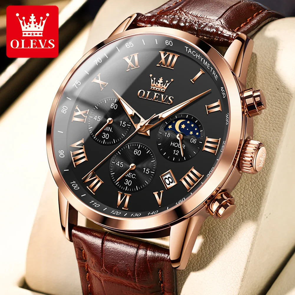 OLEVS Men’s Fashion Sports Quartz Watch with Leather Strap