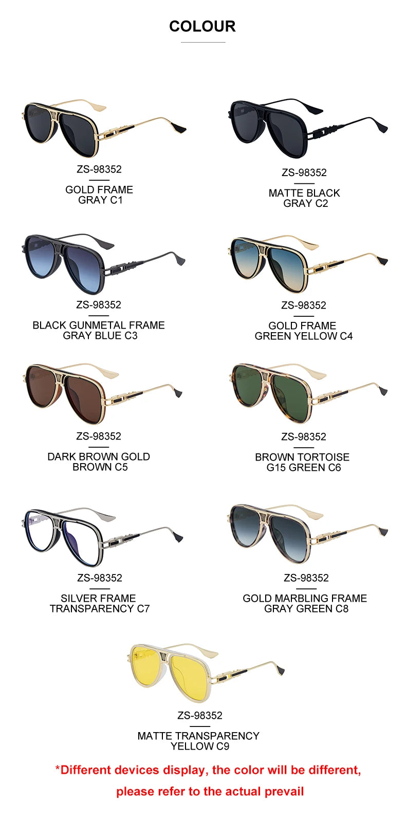 – Trendy aviator design that complements any outfit
