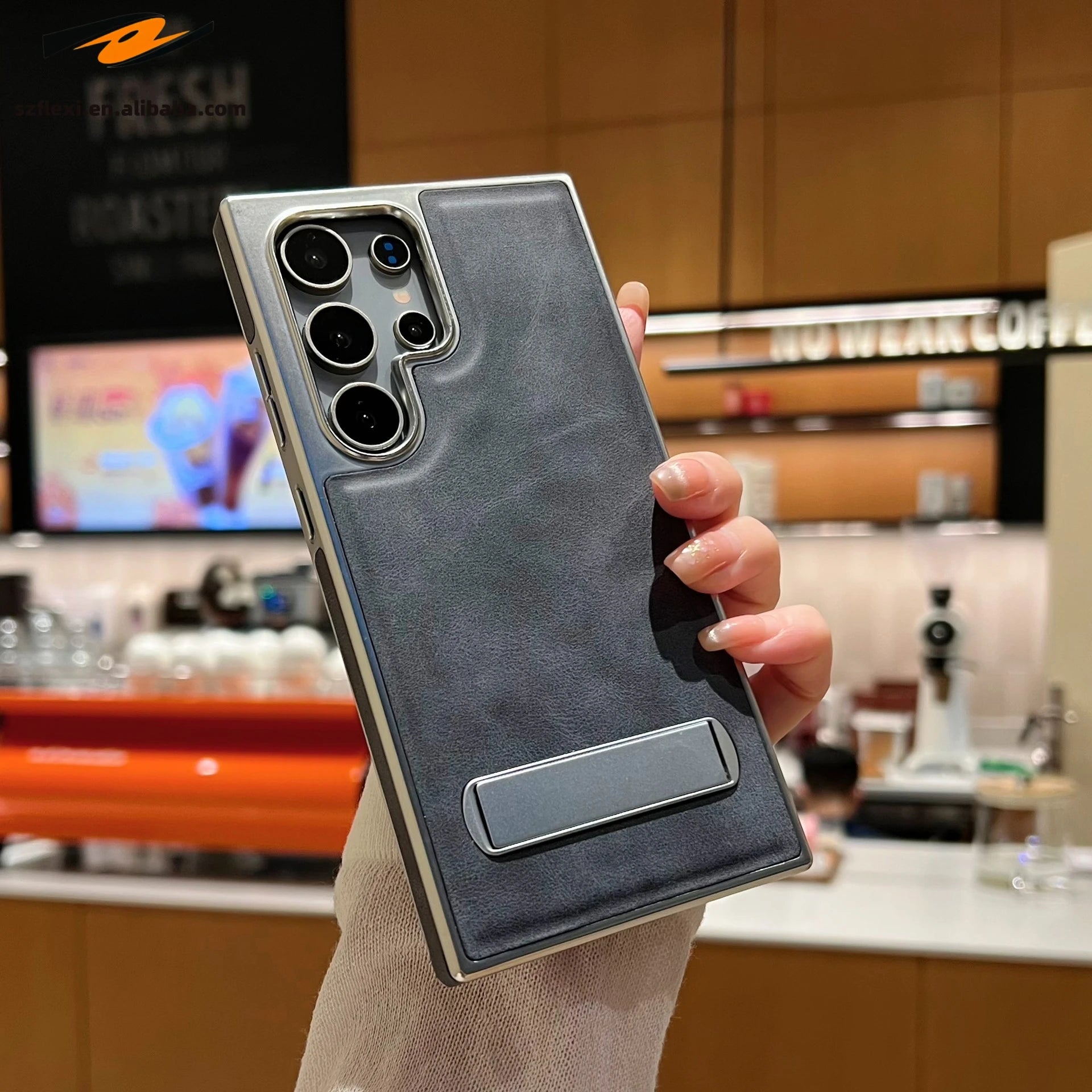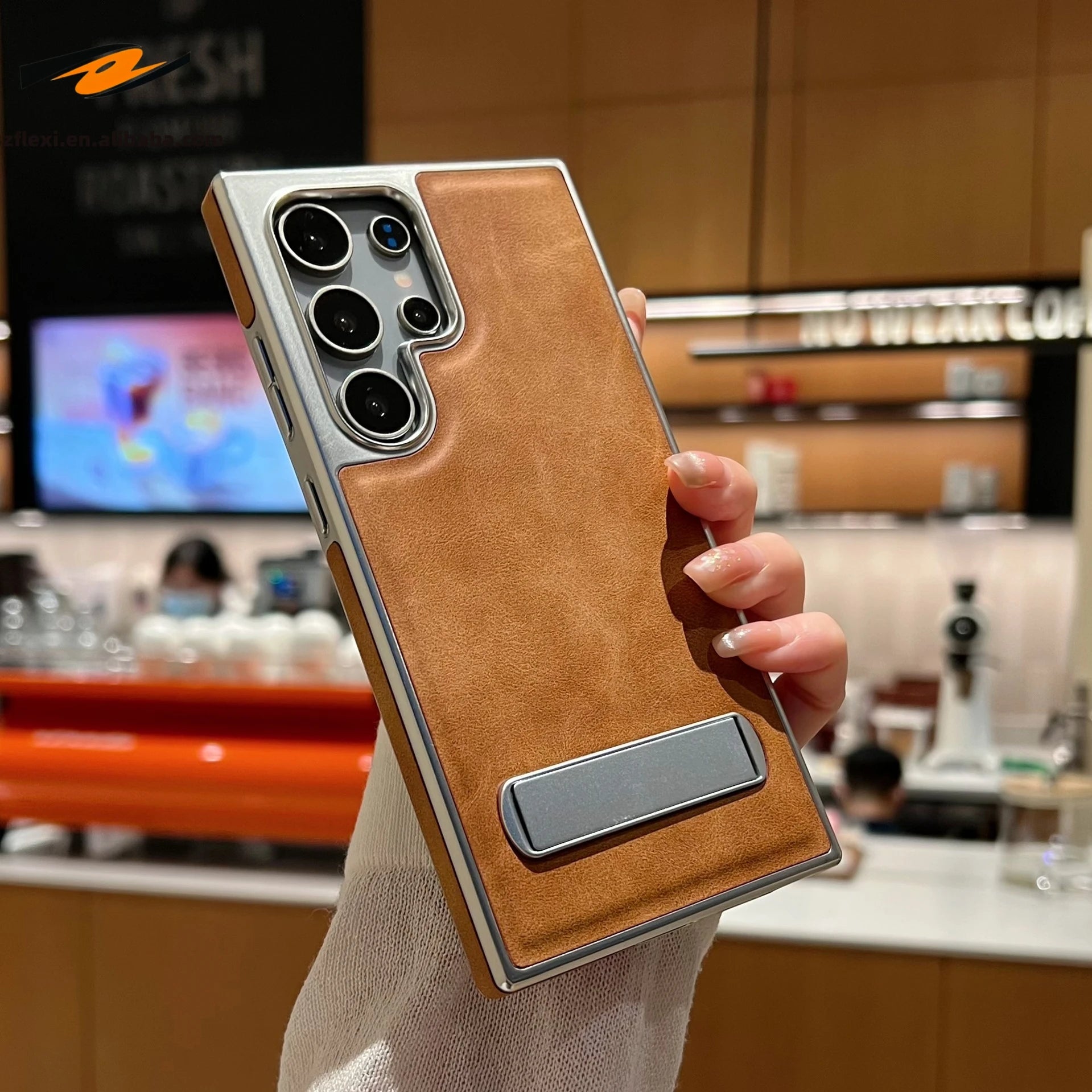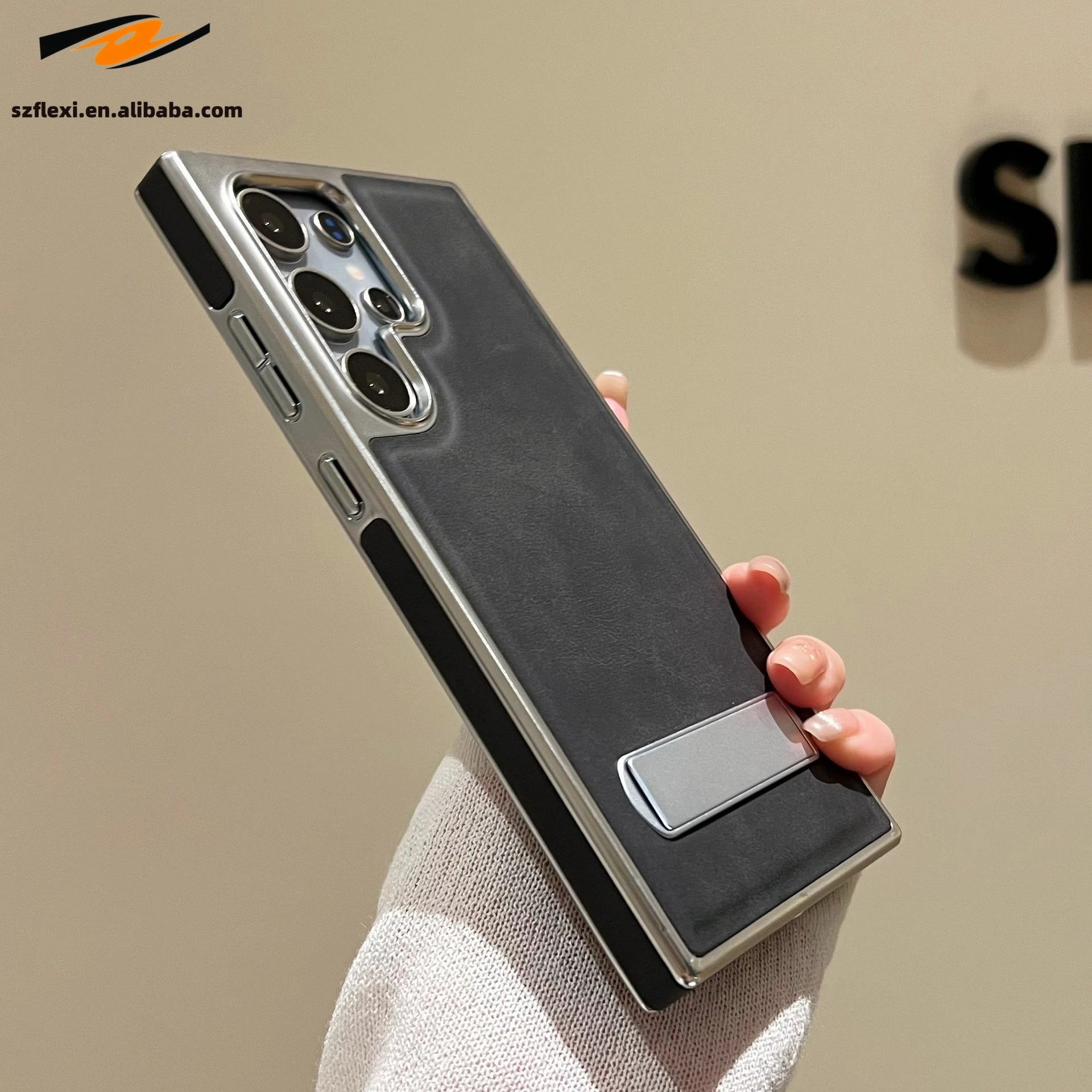 The Premium Leather Samsung Stand Case is compatible with Galaxy S22, S22 Ultra, S23, S23 Ultra, S24, and more.