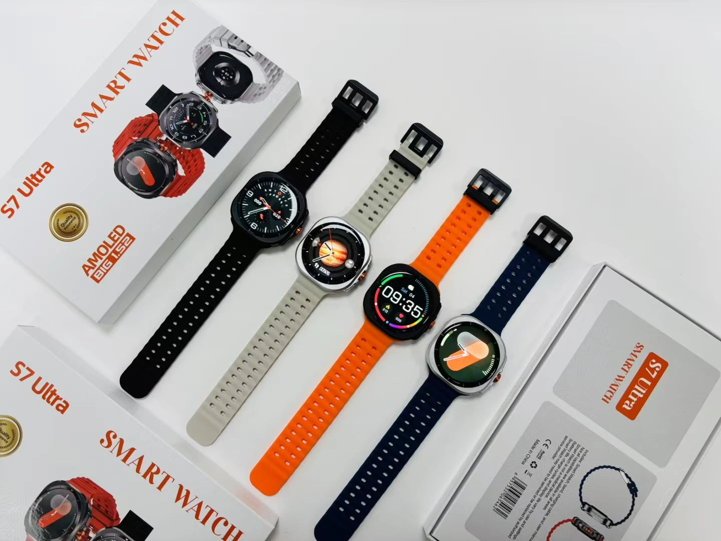 The S7 Ultra Smart Watch includes an HD display, Bluetooth connectivity, fitness tracking capabilities, and multiple color options to suit your style.