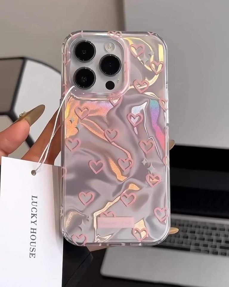 Protect your iPhone in style with the Shiny Heart Pattern Phone Case. This case combines durability with a trendy design, ensuring your device remains safe while looking fabulous.