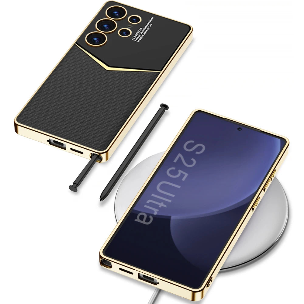 Protect your Galaxy S23, S24, or S25 with our Shockproof Carbon Fiber Leather Case, designed for ultimate durability and style.