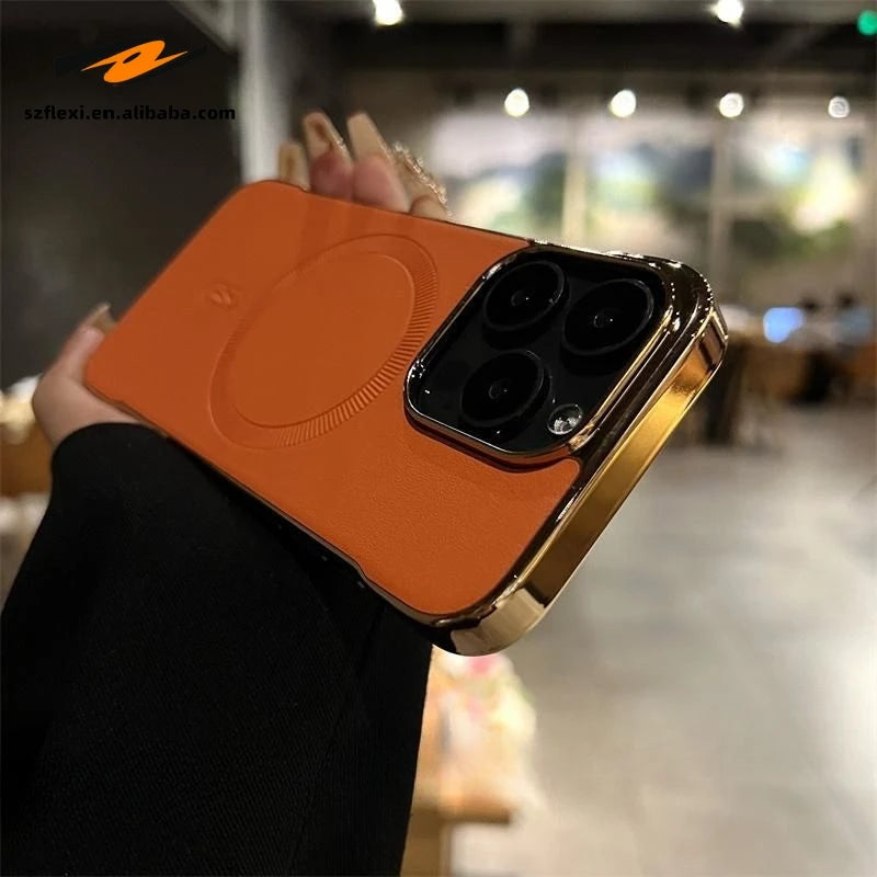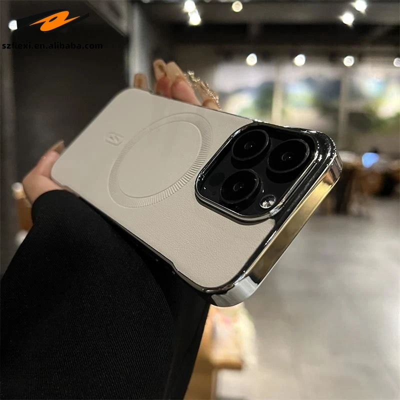 The Slim Magnetic Leather Case is compatible with iPhone 14, 15, 16, and 17 models.