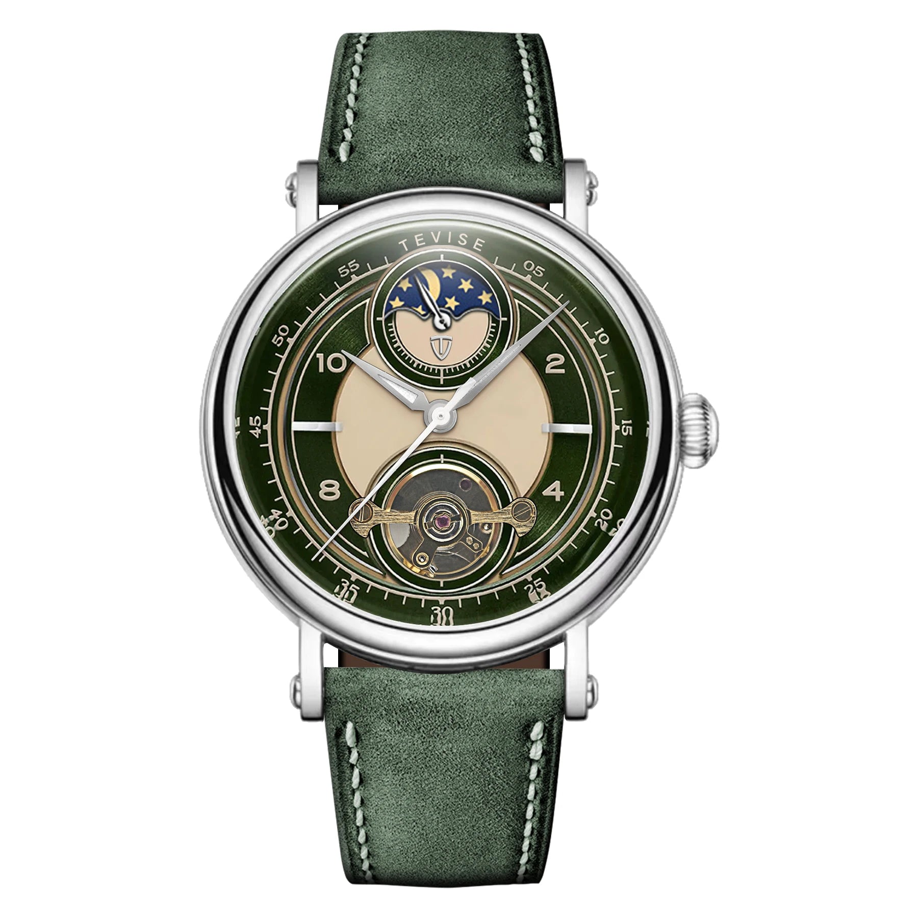 The TEVISE 2025 features an automatic mechanical movement for precise timekeeping.