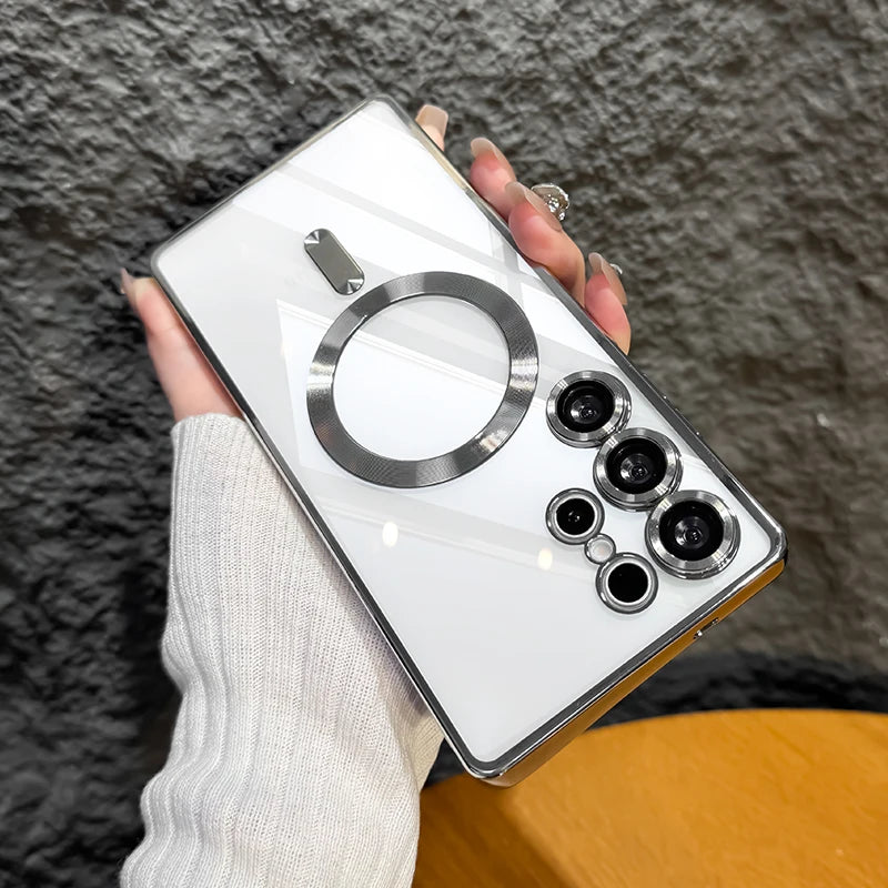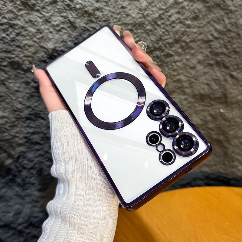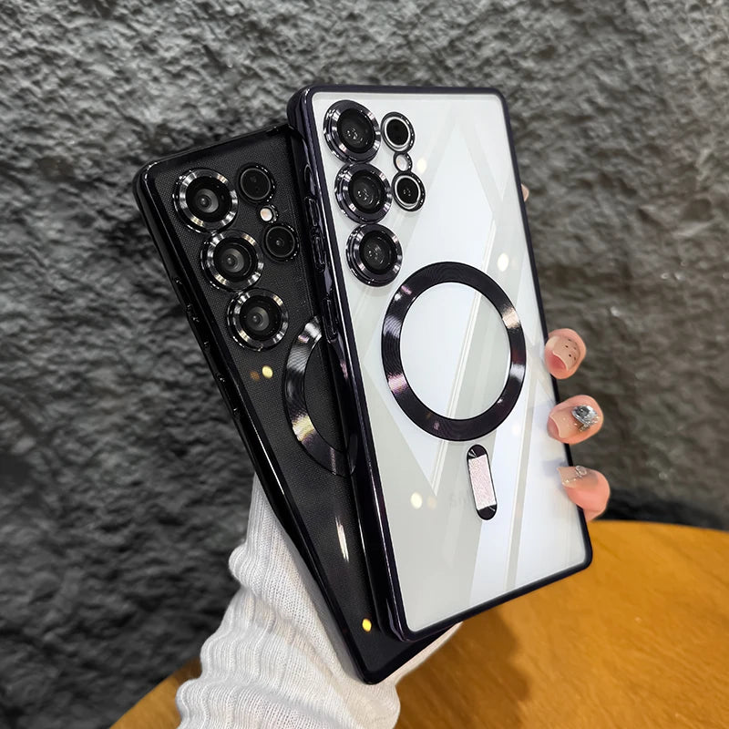 The Transparent Magnetic Case is compatible with various Samsung models including For S25 Ultra, For S25 Plus, For S24 Ultra, and many more.