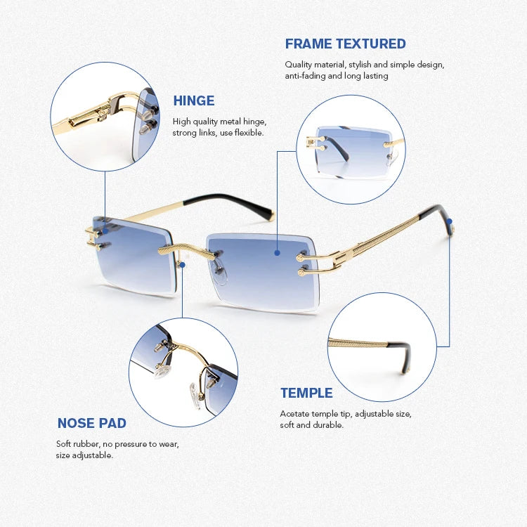 Unisex Luxury Rectangle Designer Sunglasses Features