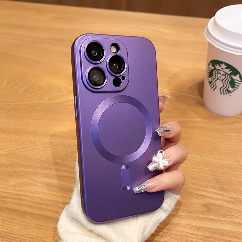 Stylish and vibrant magnetic phone available in five colors: Purple, Grey, Black, Silver, and Blue. Designed for various iPhone models, including iPhone 13, 14, and 15 series, ensuring a perfect fit. Provides superior protection while allowing easy to all buttons and ports.